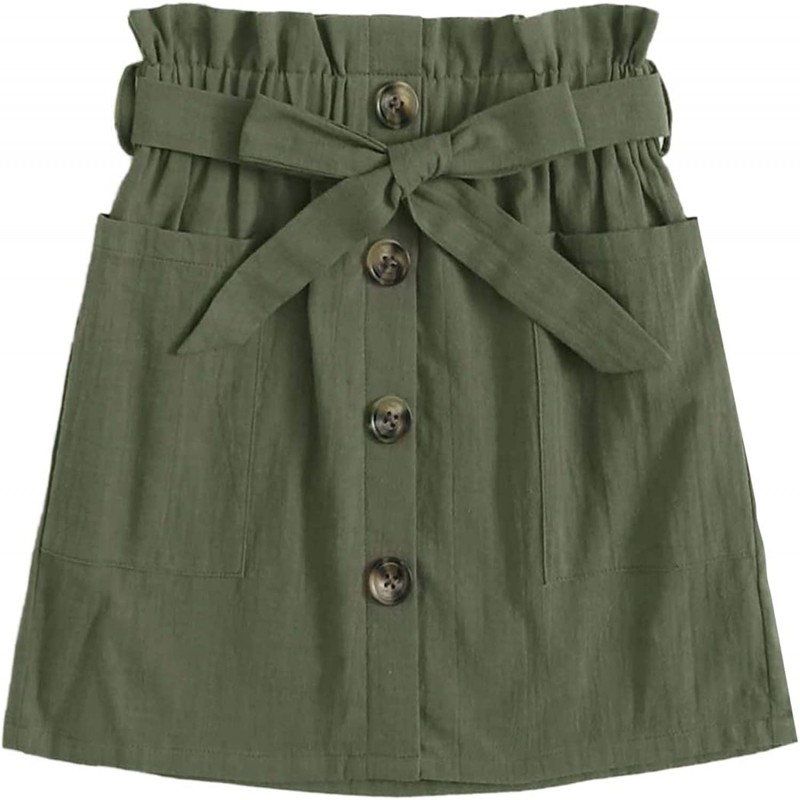 SOLY HUX Girls' Paper Bag Waist Button Front Pocket A-Line Tie Belt Skirt $78.0 |