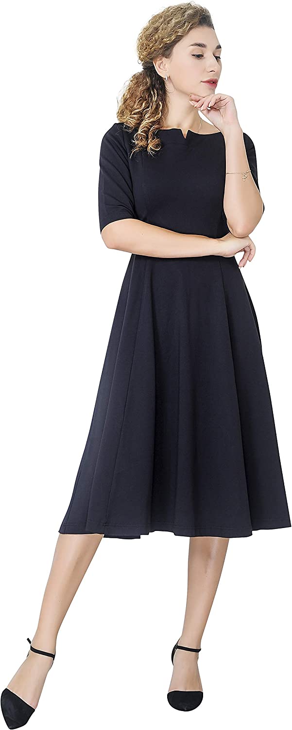 Marycrafts Women's Slim Fit and Flare Tea Midi Dress for Office Business Work