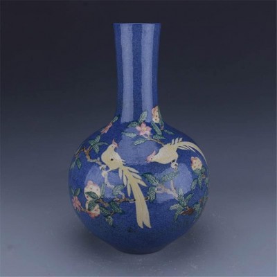 HOUKAI Antique Vase Traditional Chinese Style Blue Ceramic Snowflake Bird Vase Home Office Decoration $15465.0 |