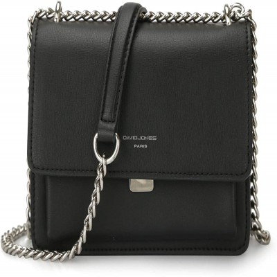 DAVIDJONES Women's Small Saffiano Faux Leather Crossbody, Cameron Shoulder Tote and Wallet with Chain Strap