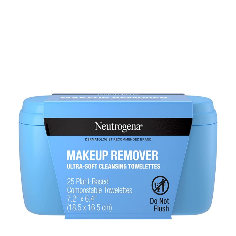 Neutrogena Makeup Remover Cleansing Towelettes, Everyday Face Wipes Remove Dirt, Grease, Sweat, Makeup and Waterproof Mascara, Mild, Soap and Alcohol-Free, 100% Vegetable-Based, 25 ct